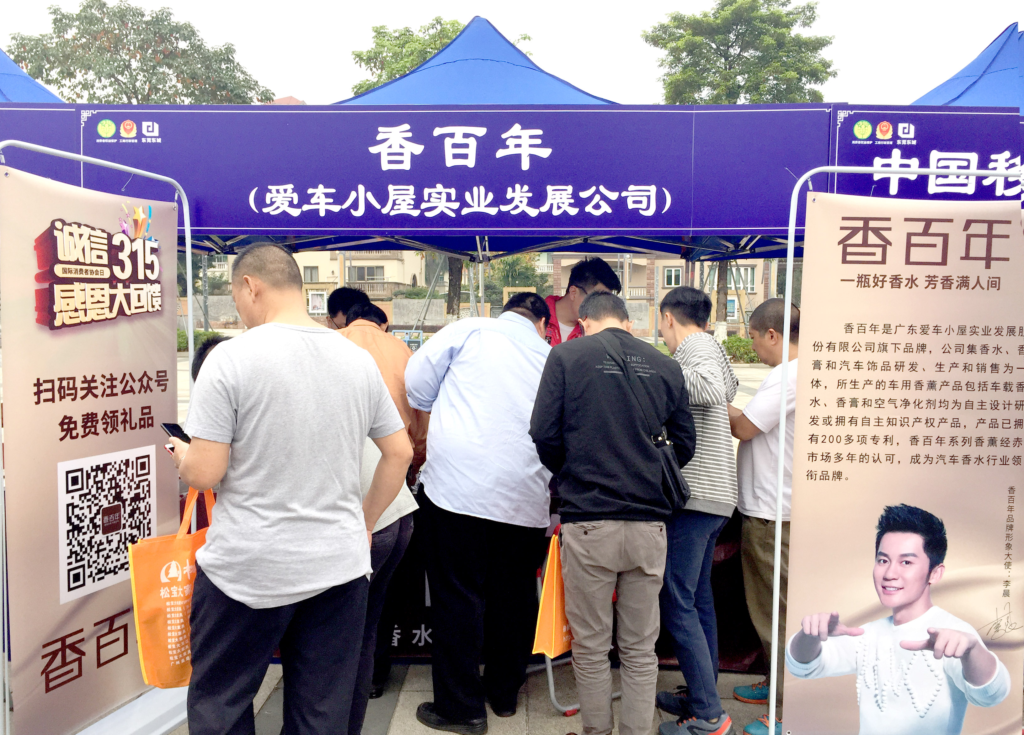 3月15日,東莞市東城區工商局在東城文化廣場舉辦了以"品質消費,美好生活"為主題的"3·15國際消費者權益日"維權宣傳活動,眾多品牌商家參與到了此次活動中,香百年作為汽車香水行業的領銜品牌也來到了活動現場中,還精心為到場的群眾們準備了免費的精致小禮品,吸引了眾多群眾前往領取,以致香百年攤位一派攘來熙往現象。