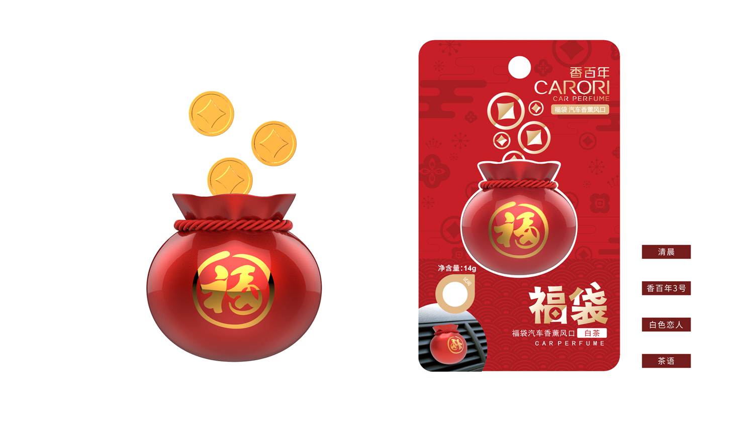 作為中國傳統的吉祥物之一,有著福氣滿滿、代代有福的吉祥寓意,深受中國人民的喜愛。為了增加儀式感,把發香體作為金幣形狀放進福袋,可謂別具心裁,獨特又有趣。錢進福袋寓意財源廣進,帶著香百年福袋一路向"錢"進啦!